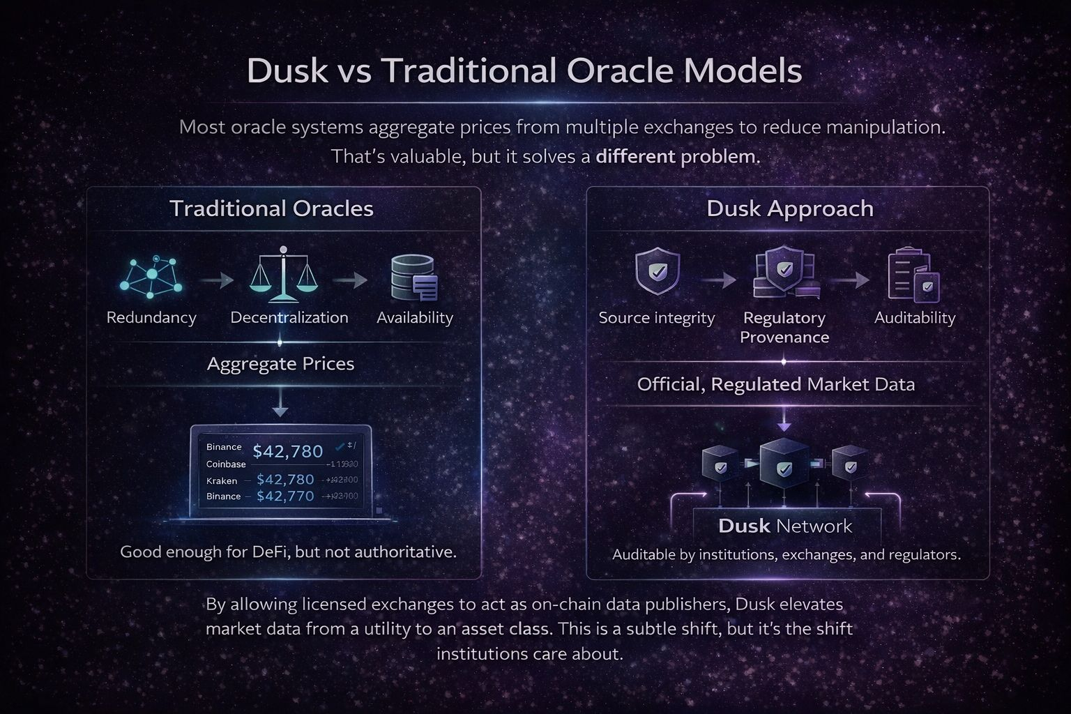 Dusk正處於那個層面,在那裏官方市場數據不是附加項,而是協議級的原語。如果這個模型成功,它不僅會使受監管的去中心化金融成爲可能。它將使受監管的、可審計的、法律可辯護的鏈上金融成爲可能。